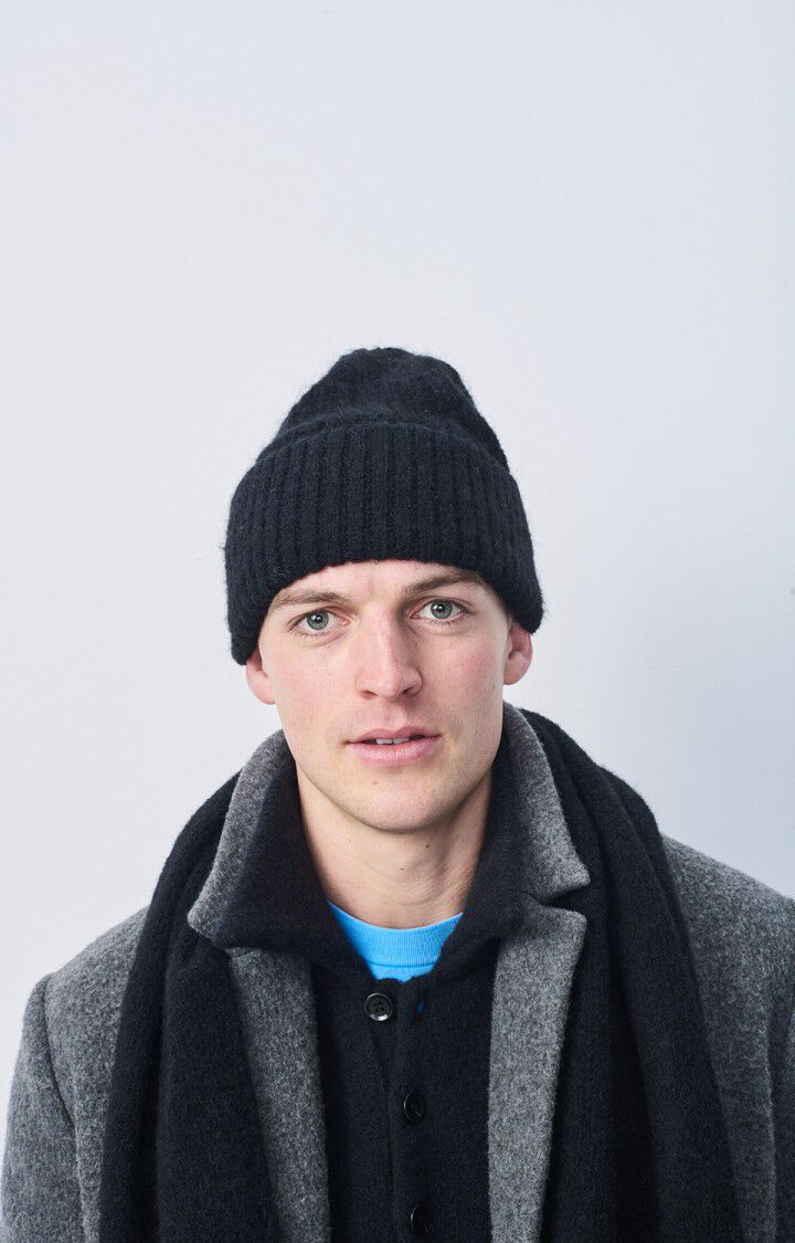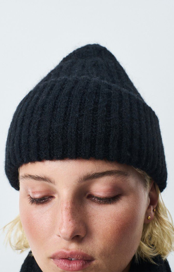 The East beanie in Black is a timeless accessory made from a blend of premium Italian yarns. Its iconic, warm and fluffy knit provides softness and comfort for everyday wear, perfect for chilly days.